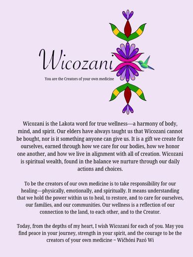 We honor and support our families, our relatives, and organizations as they cultivate nutritional wellness and put it into action. This is how we embody wicozani: by turning traditional knowledge into daily practice and empowering people to live well in body, mind, and spirit.